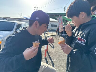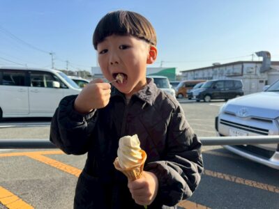 暖かかったのもあり、外で食べるソフトクリームは、格別で、『おいしー!先生ありがとうございます。』とお礼を言えていました