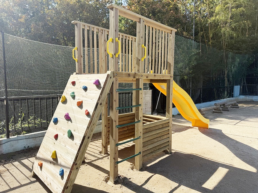 滑るときにはスピードや姿勢を調整しながら体幹や筋力を使います。自分の力で登り、滑り降りたときの爽快感や達成感は、子どもたちの笑顔と自信につながっていきます。